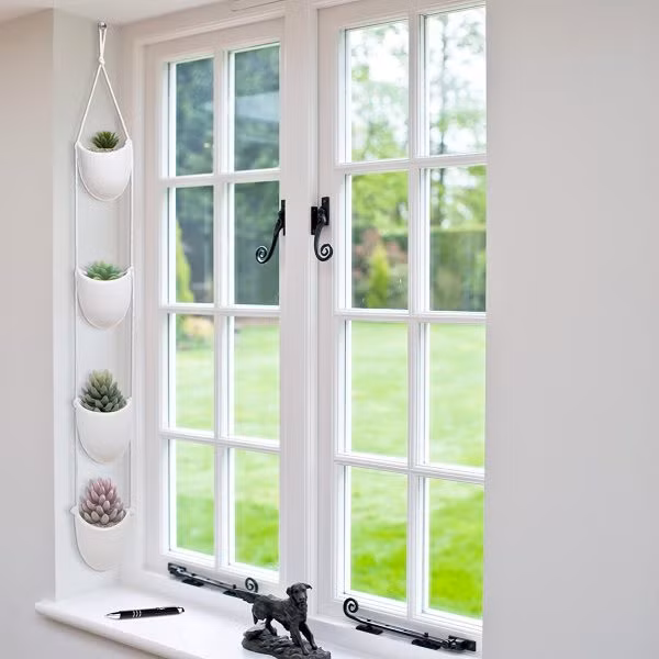 Bộ chậu cây bằng gốm này cực thích hợp cho những nhà diện tích nhỏ nhưng khao khát màu xanh của cây lá. Không quá cầu kì, chỉ cần một chiếc đinh để treo cả bộ chậu cây đẹp đẽ này bên cửa sổ. Bộ chậu này thích hợp để trồng những cây nhỏ xinh như sen đá, xương rồng...