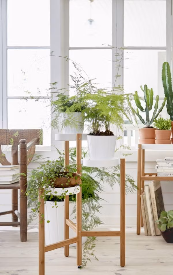 Lấy cảm hứng từ phong cách tự nhiên của núi rừng, bộ sản phẩm 3 tầng được thiết kế theo 3 hướng khác nhau của IKEA rất phù hợp để trồng cây trong phòng khách.
