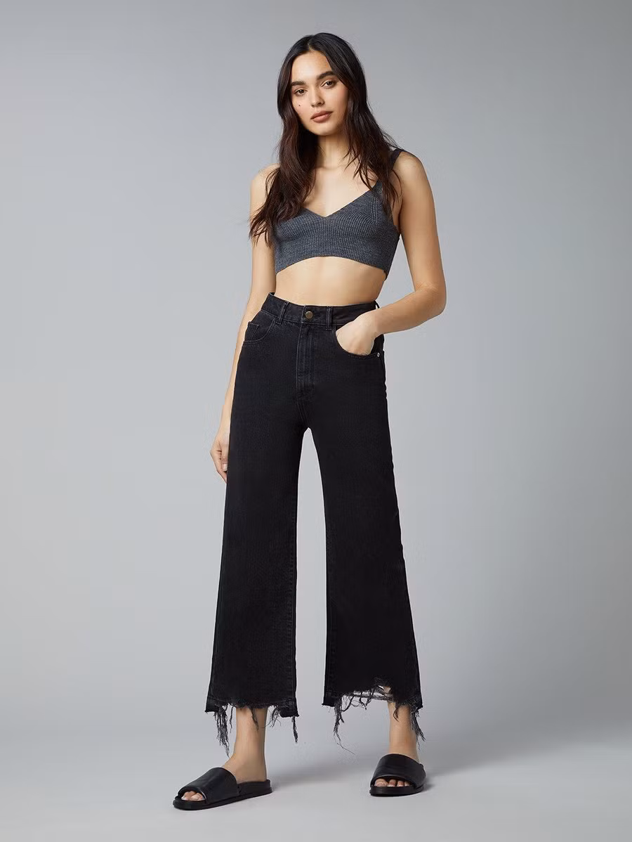 | Quần jeans lửng ống rộng lưng cao thoải mái của DL 1961. |