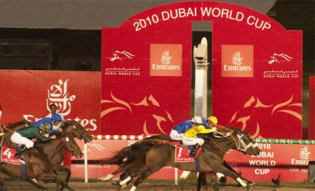 Quỹ giải thưởng lớn nhất dành cho một cuộc đua ngựa đơn là 10 triệu USD dành cho Cúp thế giới Dubai tổ chức tại trường đua ngựa Meydan ở Dubai, Các tiểu vương quốc Arập thống nhất ngày 27-3-2010. Toàn bộ số tiền thưởng được trao cho 6 con ngựa có thứ hạng dẫn đầu, trong đó con về nhất được trao thưởng 6 triệu USD.