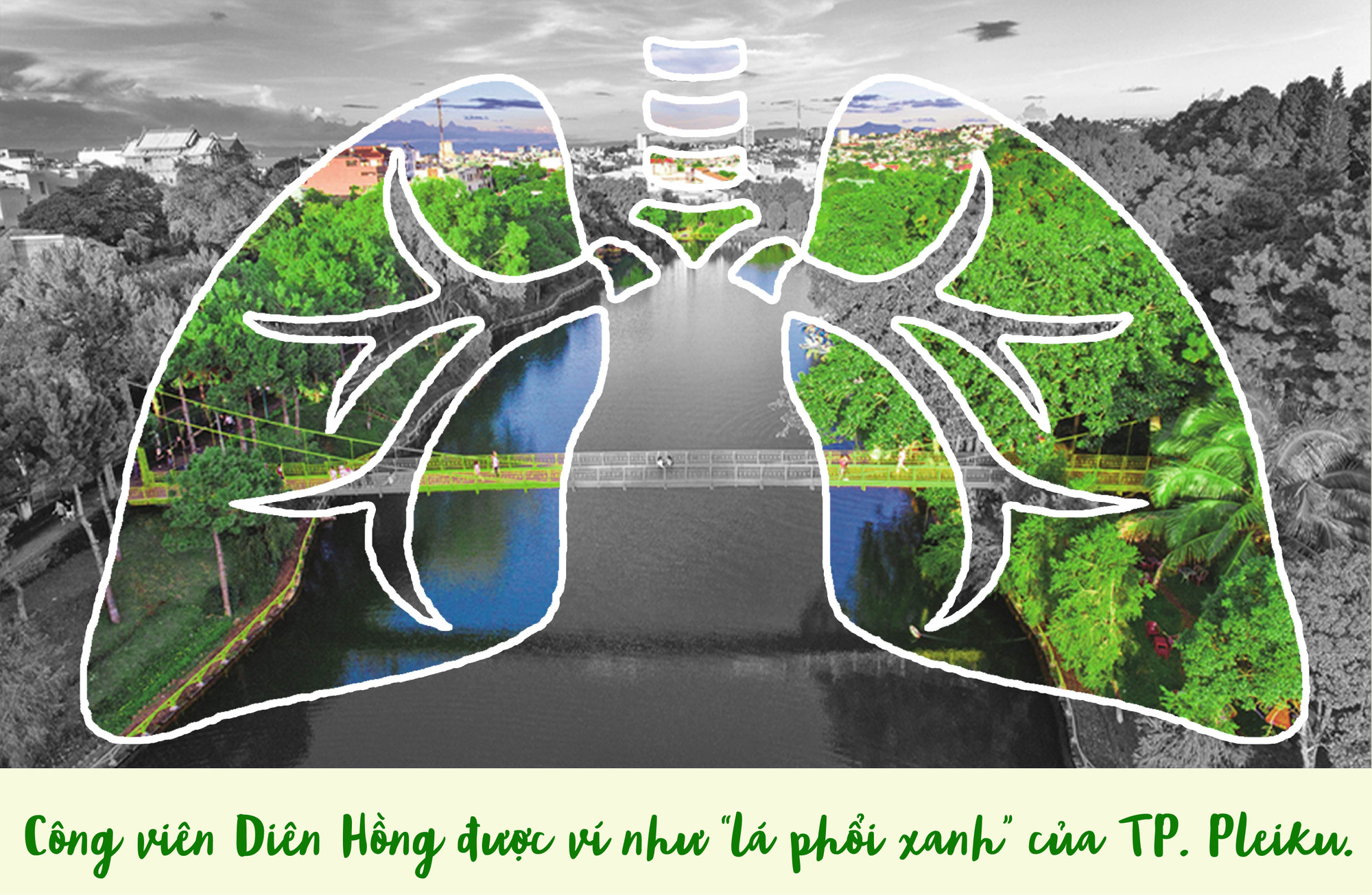 Bên cạnh đó, Công viên Diên Hồng với diện tích hơn 10,9 ha cũng là “lá phổi xanh” của Pleiku. Không gian rợp bóng cây xanh, mặt hồ êm ả là địa điểm lý tưởng cho người dân đi dạo, ngắm cảnh, tìm được cảm giác thoải mái, thư giãn. Không chỉ vậy, trong công viên cũng nuôi một số loài vật, thu hút các em nhỏ đến tham quan, vui chơi. Vài năm gần đây, nhiều thiết bị thể dục ngoài trời được lắp đặt, nơi này lại càng có đông người dân đến tập luyện thể dục thể thao mỗi ngày. Hay như Lâm viên Biển Hồ đã trở thành địa điểm hấp dẫn khách du lịch đến tham quan, thu hút đông đảo người dân đến sinh hoạt cộng đồng, hoạt động thể dục thể thao bởi không gian ngập tràn thông xanh, mặt nước rộng lớn, mát mẻ quanh năm.