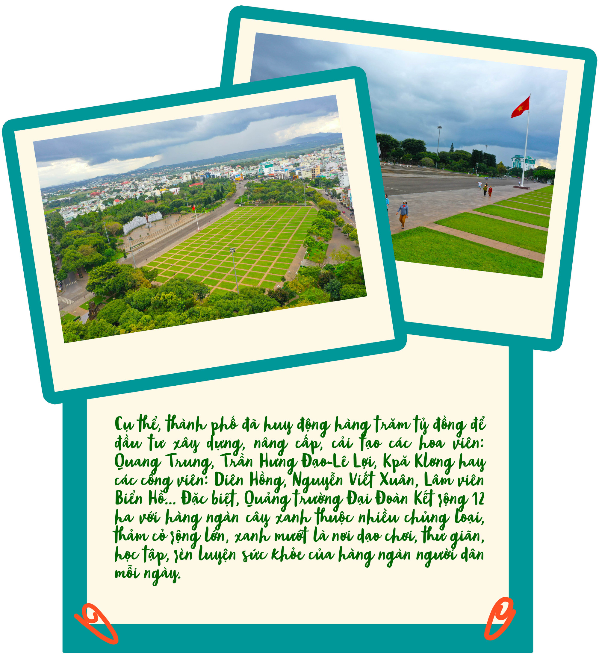 Thời gian qua, TP. Pleiku đặc biệt quan tâm quy hoạch, bố trí, đầu tư xây dựng không gian công cộng, trong đó có công viên, hoa viên. Không gian xanh mát, thoáng đãng của các hoa viên, công viên được xem là những “lá phổi xanh”, góp phần đáp ứng nhu cầu vui chơi, hưởng thụ cuộc sống của người dân.