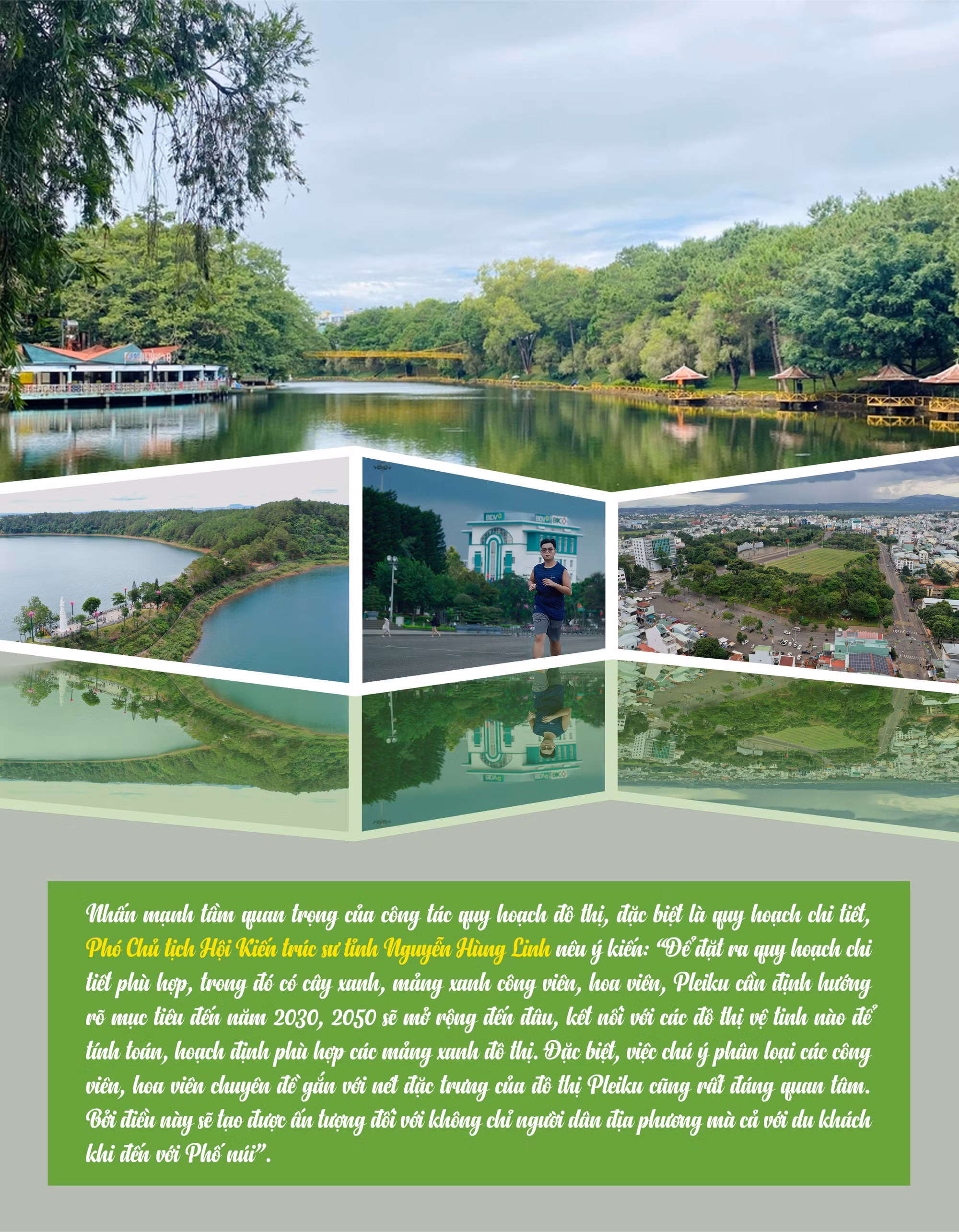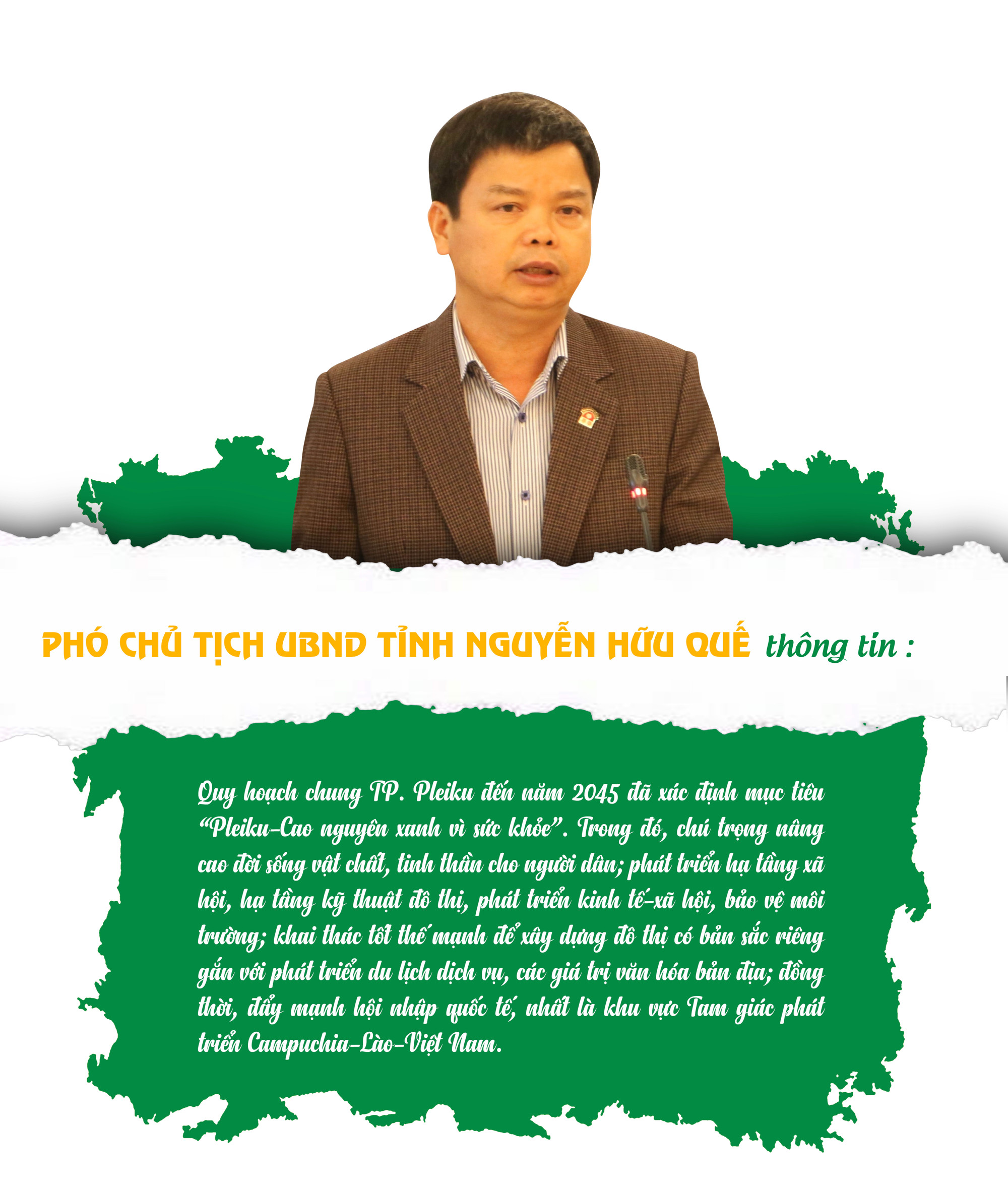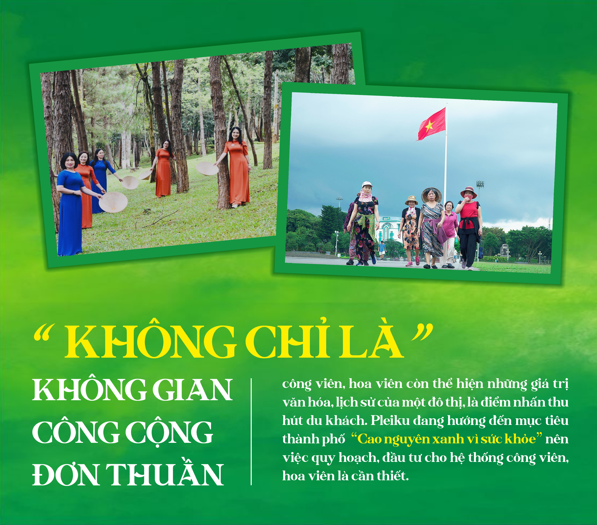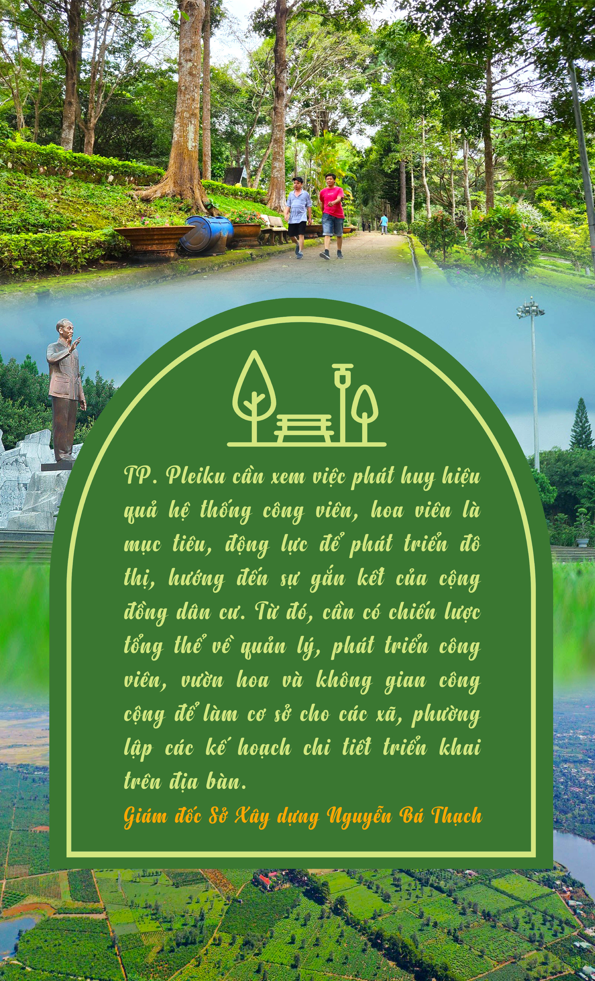 Trong Quy hoạch tỉnh Gia Lai thời kỳ 2021-2030, tầm nhìn đến năm 2050 cũng xác định Pleiku có vai trò, vị thế quan trọng, là trung tâm động lực, thành phố thông minh thúc đẩy phát triển khu vực Bắc Tây Nguyên cũng như của Tam giác phát triển Campuchia-Lào-Việt Nam. Đô thị Pleiku là tâm điểm trong tiểu vùng trung tâm của tỉnh cùng với các huyện: Chư Păh, Chư Sê, Chư Pưh, Đak Đoa, các xã Ia Sao, Ia Dêr, Ia Pếch (huyện Ia Grai), các xã Bàu Cạn, Ia Băng (huyện Chư Prông). Giám đốc Sở Xây dựng cho biết: Đối với TP. Pleiku, định hướng trong giai đoạn 2021-2030, tầm nhìn đến năm 2050, bên cạnh hệ thống các công viên, hoa viên đã có, 3 cấp độ quy hoạch (quy hoạch chung, quy hoạch phân khu, quy hoạch chi tiết) sẽ tiếp tục bổ sung, định hình hệ thống các công viên, hoa viên đến từng đơn vị ở, nhóm ở và xem đây là yêu cầu về cải thiện, nâng cao chất lượng, tiện ích sống của đô thị, là động lực phát triển đô thị. Đặc biệt, đối với các khu vực đầu tư, phát triển không gian đô thị mới, bắt buộc các chủ đầu tư phải thực hiện, hoàn thiện công viên, hoa viên trước khi dự án được đưa vào khai thác, vận hành.