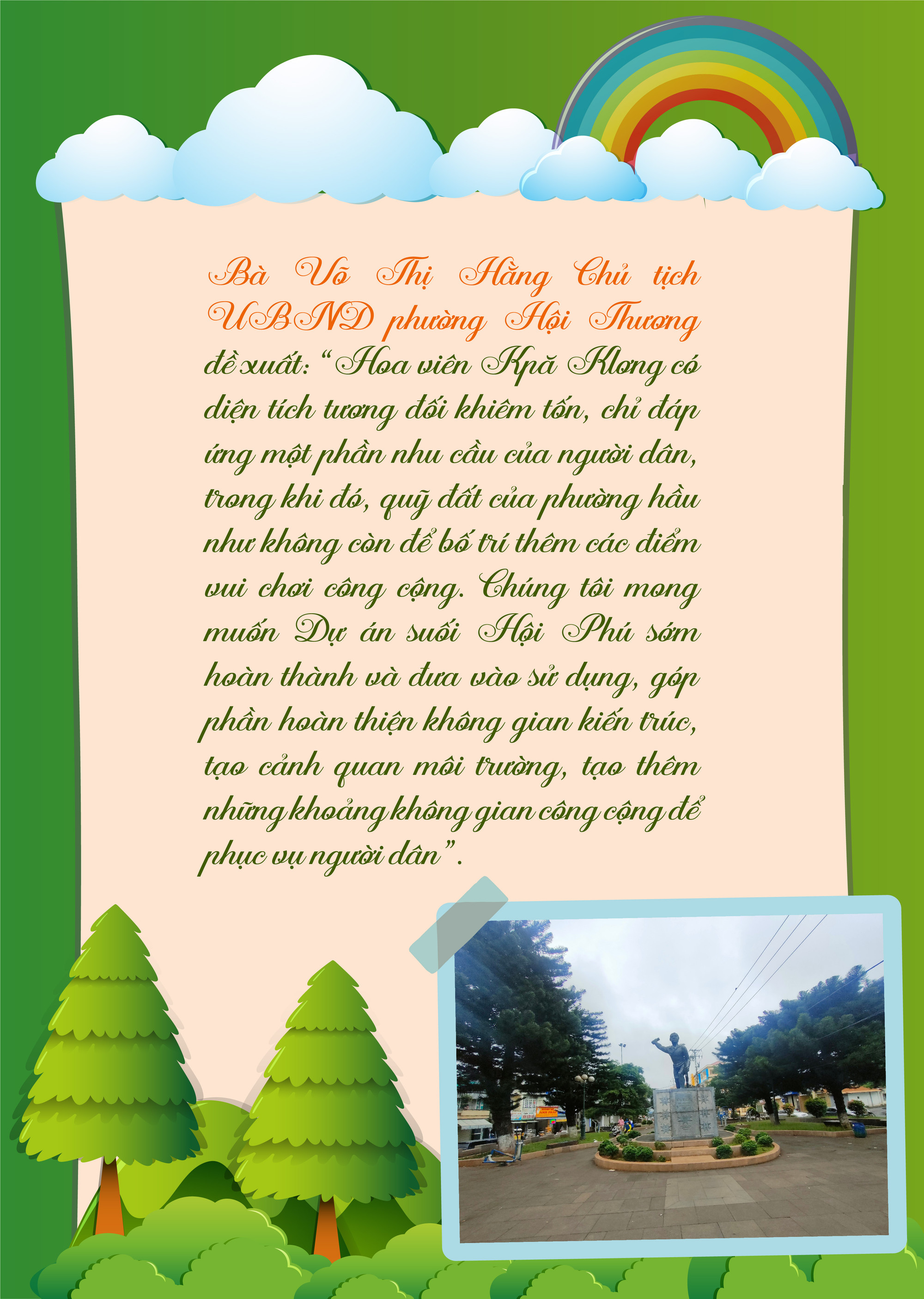 Hội Thương là một trong những phường trung tâm của TP. Pleiku, có mật độ dân số tương đối đông nên nhu cầu về hoa viên, công viên để vui chơi, giải trí là rất lớn. Được thành phố quan tâm bố trí vốn đầu tư nâng cấp, cải tạo nên hoa viên Kpă Klơng đã trở nên khang trang, sạch đẹp hơn trước. Đồng thời, hoa viên được bố trí các dụng cụ tập thể dục cũng như trồng cây xanh. Vì thế, nơi này trở thành điểm đến quen thuộc của người dân trong phường.