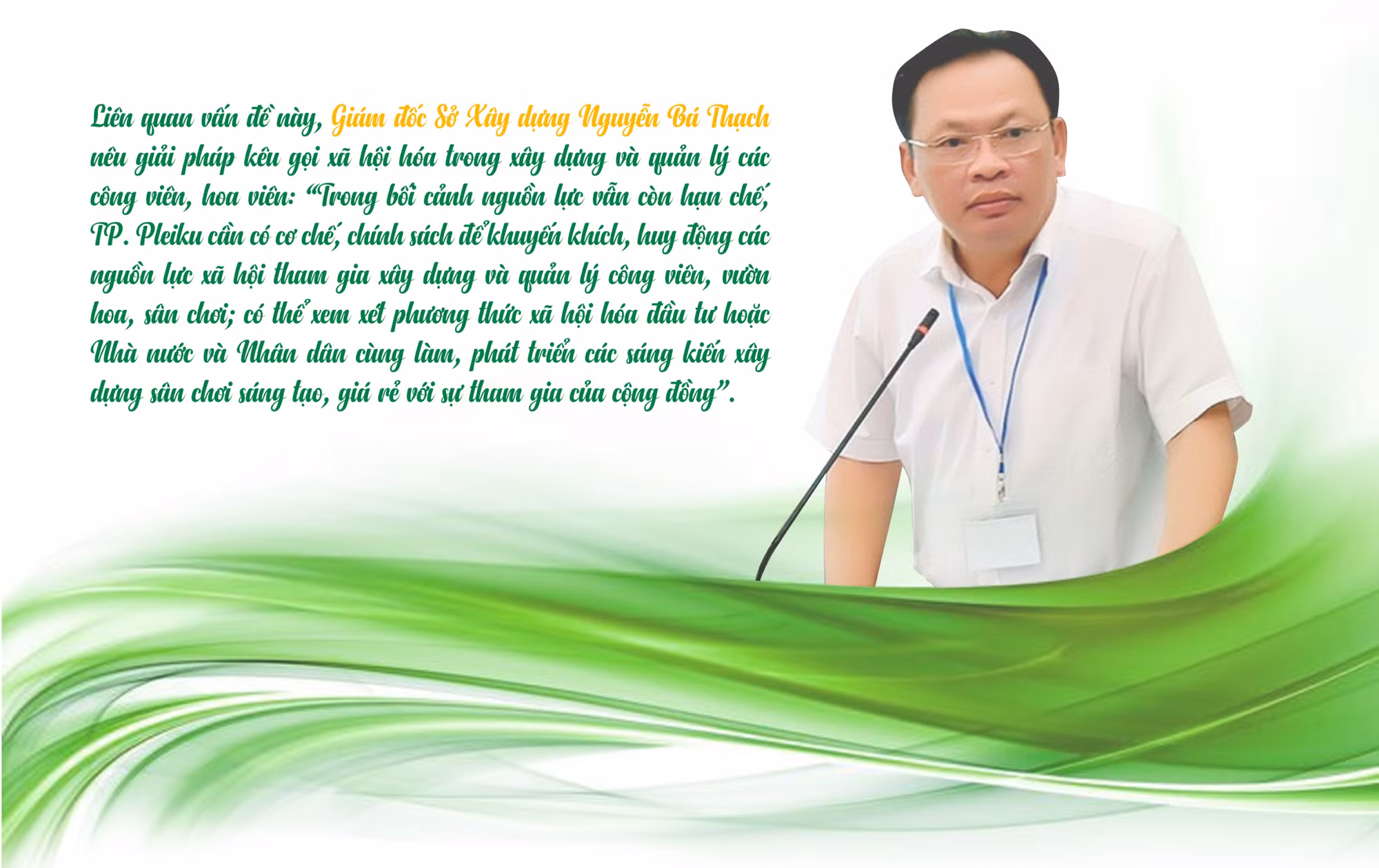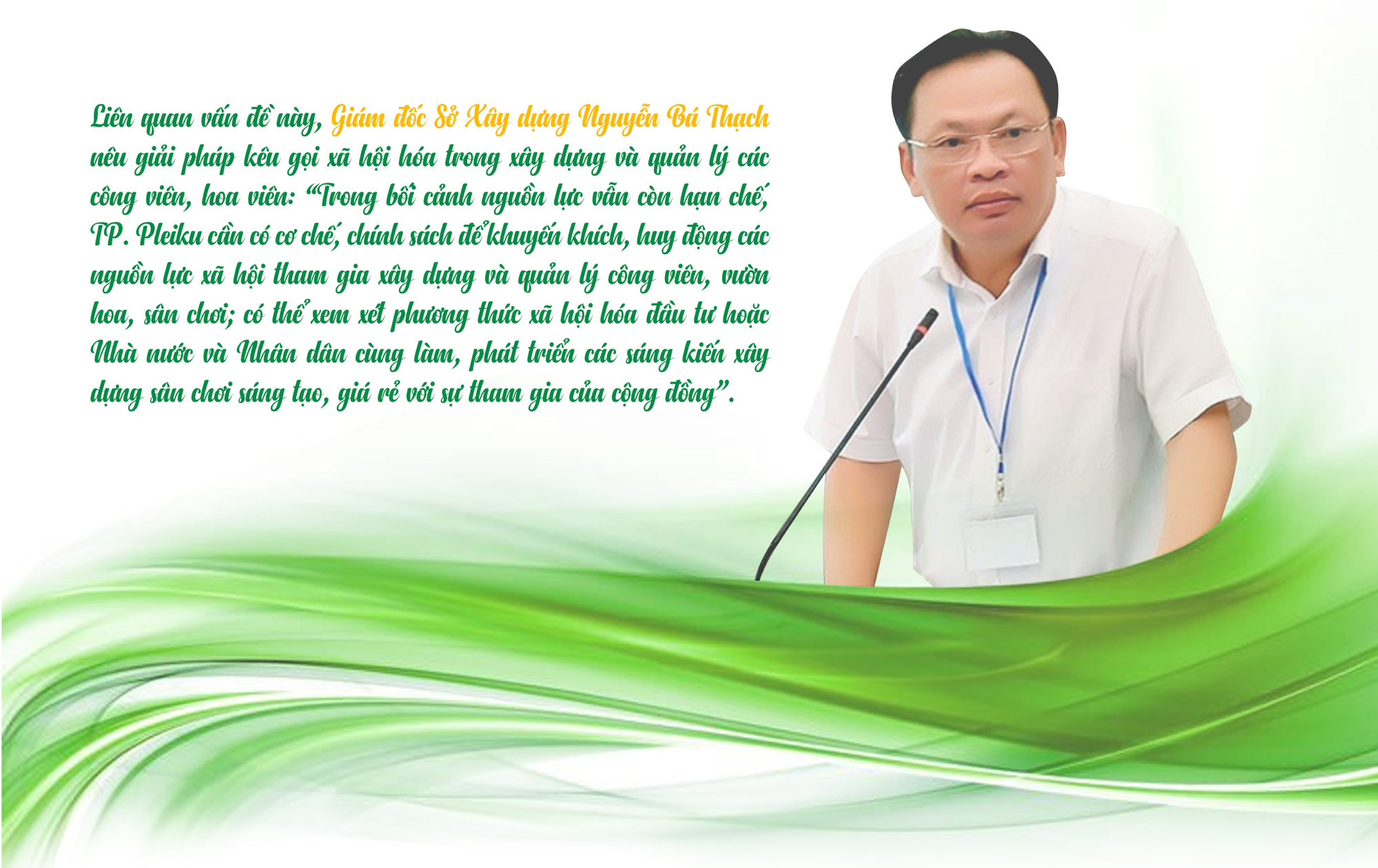 Theo Phó Chủ tịch UBND tỉnh, những năm qua, Thành ủy Pleiku đã ban hành nhiều nghị quyết liên quan đến phát triển kết cấu hạ tầng, văn hóa-xã hội và đã phát huy tác dụng, giúp thành phố ngày càng khang trang, hiện đại. Tuy nhiên, TP. Pleiku vẫn thiếu nghị quyết chuyên đề về phát triển cây xanh và công viên, hoa viên. Nếu được ban hành, nghị quyết này sẽ là cơ sở để các cấp, các ngành tận dụng những khoảng không gian trống trong các khu dân cư để xây dựng công viên, hoa viên; tránh trường hợp biến những khoảng đất trống đó thành đất ở, phân lô bán nền...
