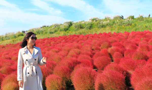 Nằm ở tỉnh Ibaraki, Hitachi Seaside Park có đến hơn 4,5 triệu cây hoa nemophila xanh nở rộ vào mùa xuân biến nơi đây thành biển hoa cực ấn tượng. Vào tháng 10, khuôn viên của công viên lại được phủ màu vàng rực và đỏ của các loại hoa cỏ.
