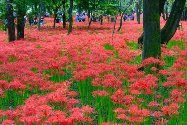 Hoa bỉ ngạn được mệnh danh là hoa tử thần ở Nhật và Trung Quốc vì chúng chủ yếu mọc ở nghĩa trang. Lễ hội hoa bỉ ngạn được tổ chức ở công viên Kinchakuda, ở Hidaka, Saitama, không quá xa Tokyo. Trong lễ hội này còn có thêm hoa huệ tô điểm cho cánh đồng hoa đầy sắc màu khiến ai cũng mê đắm. Bạn có thể chiêm ngưỡng lễ hội hoa bỉ ngạn độc đáo khi đến Nhật vào cuối tháng 9.
