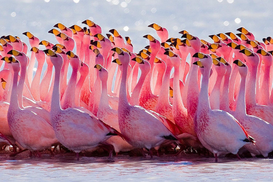 Hồng hạc: Hồng hạc có lẽ là loài chim dễ nhận biết nhất trên thế giới. Bộ lông màu hồng tía tuyệt đẹp tự khiến nó trở nên nổi bật đặc biệt giữa các loài chim khác. Có 6 loài hồng hạc sống ở mọi nơi trên thế giới, trừ Nam Cực. Một con chim hồng hạc trưởng thành có trọng lượng lên đến 3,6 kg. Chúng có chiếc cổ và đôi chân dài, cho phép bắt cá nhỏ, ấu trùng và sinh vật phù du dưới nước bùn.