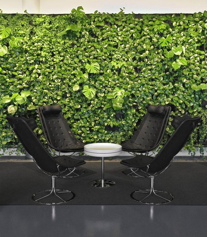 Những bức tường được phủ xanh như thế này sẽ giúp bạn tiết kiệm được không gian sử dụng hơn nhiều việc sắm thêm những chậu cây xanh nhỏ.