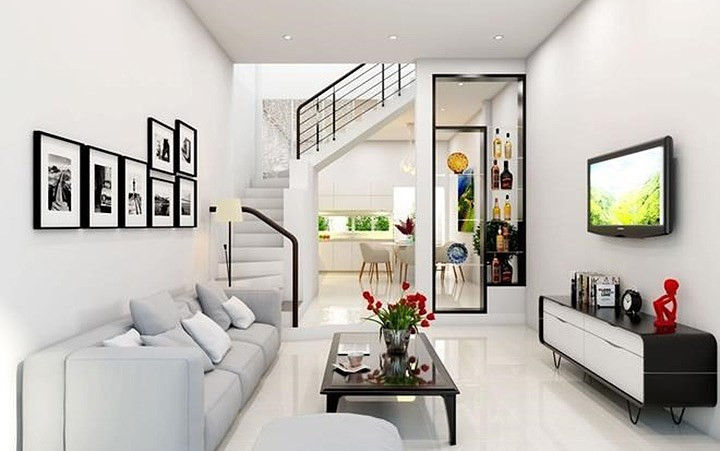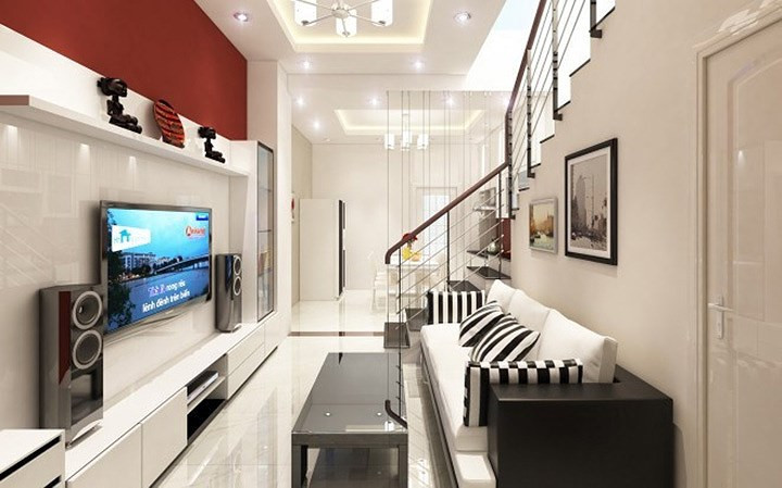 Nếu không gian nhỏ, hẹp, phòng khách nhà ống cần có sự bài trí đơn giản để tránh mang lại cảm giác chật chội.