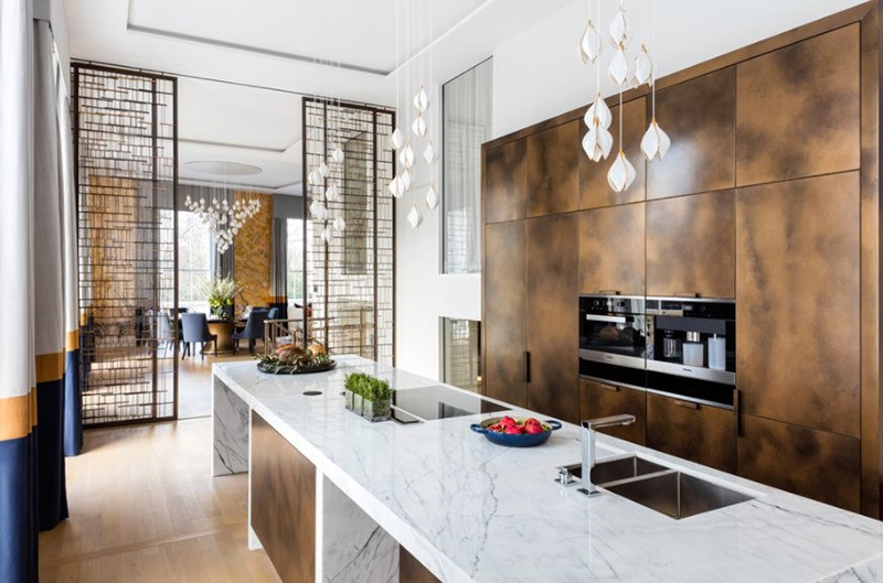 Nâu là màu của đất, nơi sản sinh ra thực phẩm. Gam màu này rất dễ kết hợp với những màu sắc khác. Căn bếp dưới đây được phối hợp màu sắc một cách chuyên nghiệp.
