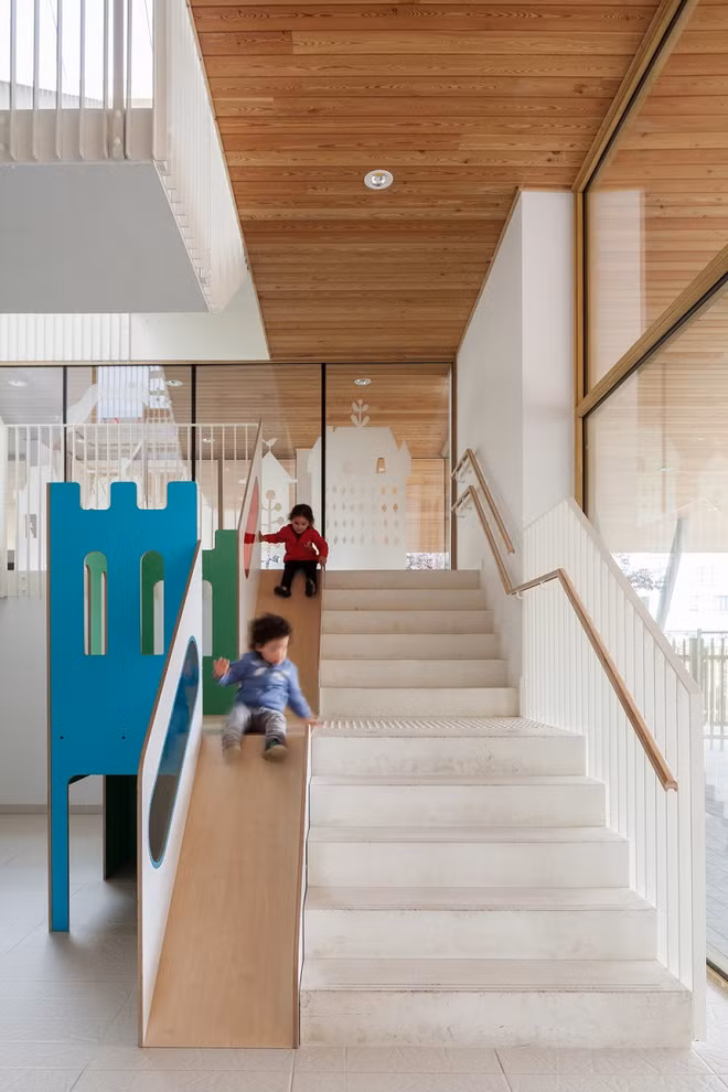 Tuy nhiên, với trí óc sáng tạo của người thiết kế những mẫu cầu thang đi kèm cầu trượt vui chơi cho các con đã được ra đời như thế này đây. Với diện tích lớn, ghép nối lại với nhau, đây chính là khu vui chơi trong nhà của lũ trẻ.