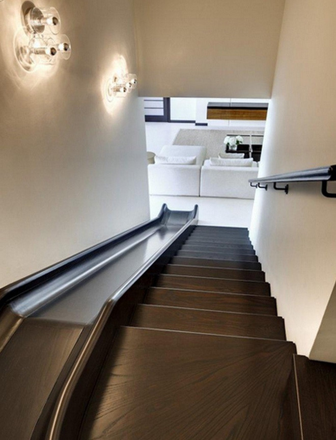 Còn đây là mẫu thiết kế cầu thang kiêm cầu trượt theo phong cách sang trọng, sành điệu rất phù hợp với những ngôi nhà mang phong cách hiện đại.