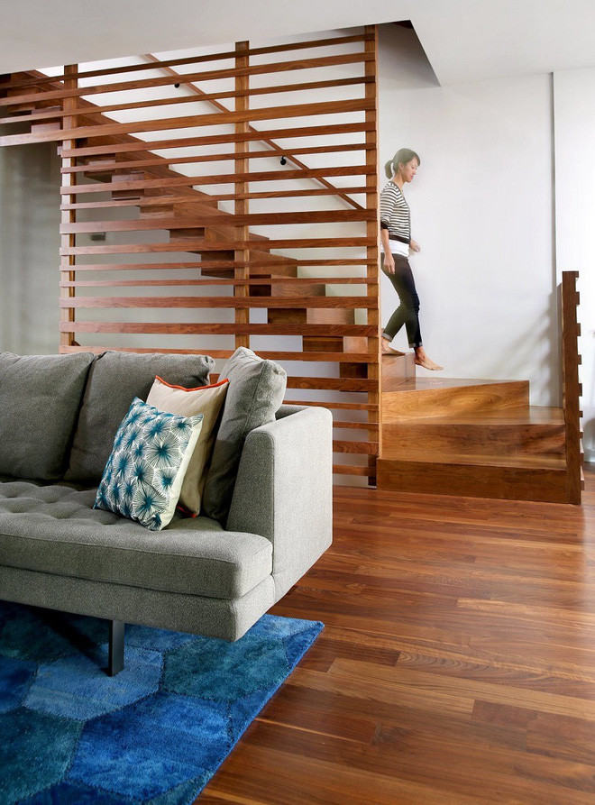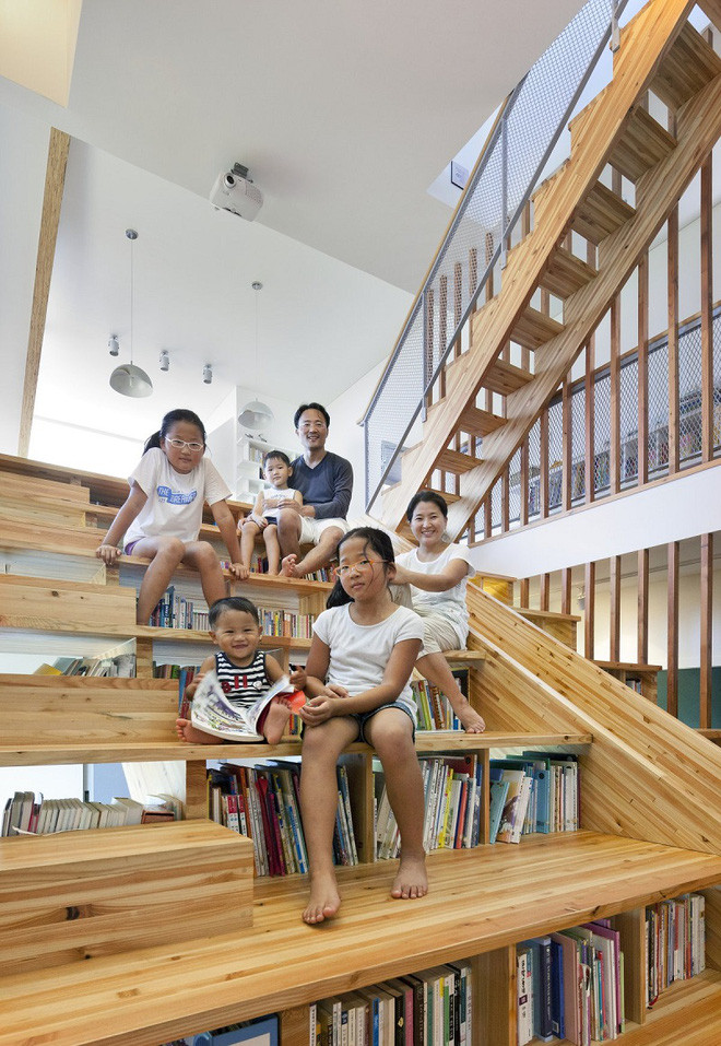 Một tính năng tiện dụng nữa phía trong không gian thừa của các bậc cầu thang với nhau, chính là bạn có thể sử dụng chúng thành nơi lưu trữ sách, truyện giải trí của con.