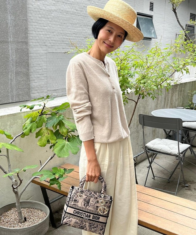 Nữ diễn viên hài số 1 xứ kim chi Kim Na Young xuống phố mùa thu với một concept vô cùng phóng khoáng, năng động gồm quần ống suông chất liệu linen thoải mái mềm mại mix cùng cardigan dệt kim tiệp màu và không quên nhấn nhá cho set đồ hai món phụ kiện là túi xách mini, mũ cói