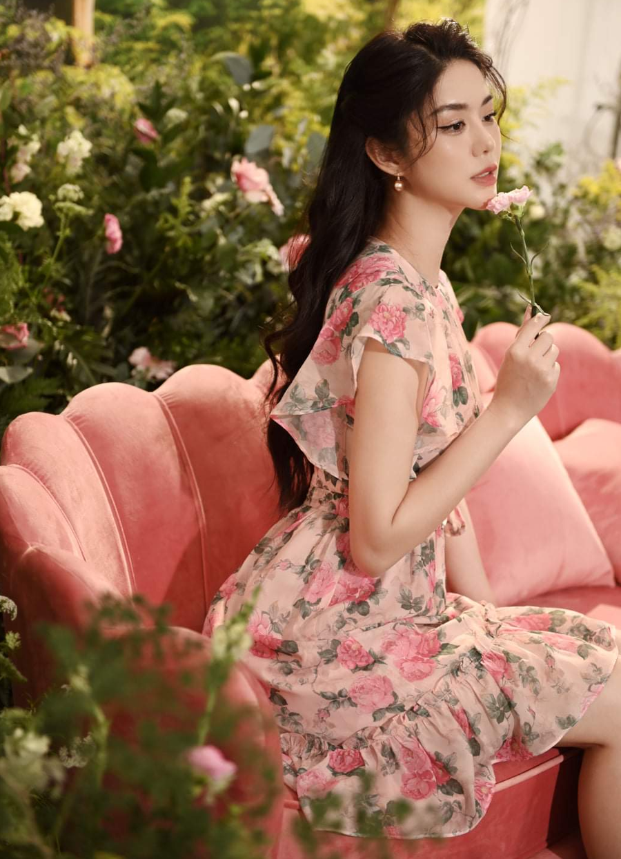 Nhấn nhá thêm chút phụ kiện như băng đô hay đôi sandals cao gót khi mix cùng đầm voan chữ A họa tiết hoa nhí giúp nàng khoe vòng 2 thon thả và vóc dáng thanh thoát.