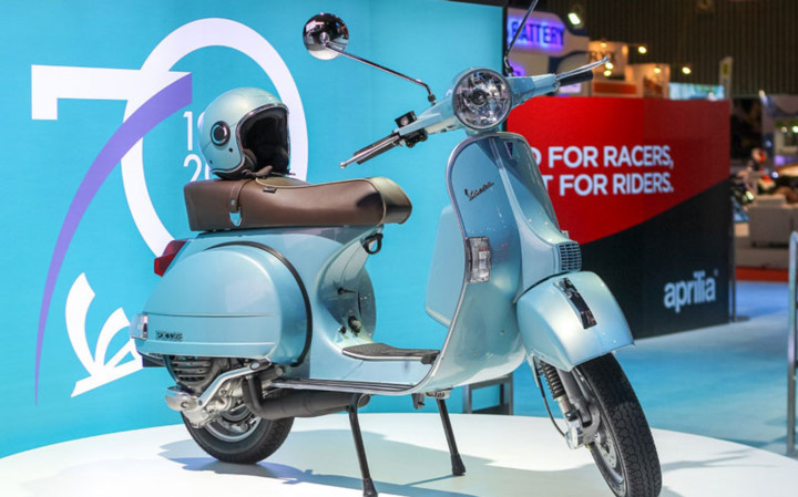 Sau 70 năm xuất hiện trên thị trường, Piaggio đã bán tổng cộng hơn 80 triệu chiếc Vespa các loại và hãng đã tung ra chiếc Vespa PX 125 70th Anniversary để kỉ niệm dấu mốc đặc biệt này. Với thiết kế mang hình mẫu nguyên bản nhất của chiếc Vespa huyền thoại. Thiết kế gọn gàng, dễ dàng sử dụng kết hợp hài hòa cùng sức mạnh vượt trội của chiếc xe mang thân bằng thép liền khối. Xe có mức giá 135 triệu đồng. (Ảnh: Zing)