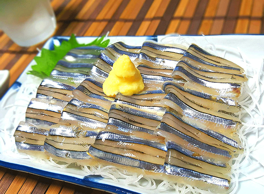 Kibinago là loại cá trích nhỏ, chỉ có ở vùng đảo Kyushu. Khi dùng món ăn này người ta sẽ thái cá thành từng lát thật mỏng, chấm với giấm hoặc nước tương pha chế theo công thức đặc biệt. Cùng với bạch tuột sống, tôm sống, sushi,…cá Kibinago là một trong những món sống thể hiện tinh túy của ẩm thực Nhật Bản.