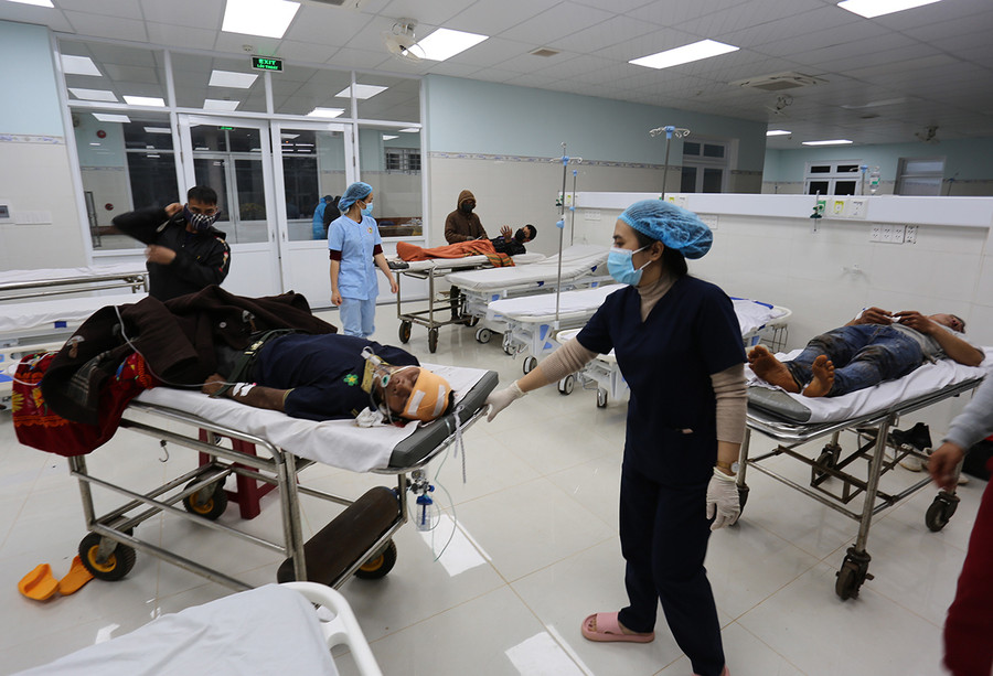 Có mặt tại Khoa Cấp cứu vào đêm Giao thừa mới cảm nhận hết sự căng thẳng và áp lực của những người khoác lên mình tấm áo blouse trắng. Khoảng 23 giờ, 2 bệnh nhân L.T.P. và L.M.H. (cùng SN 2004, cùng trú tại xã Đak Yă, huyện Mang Yang) được xe cấp cứu chở vào bệnh viện trong tình trạng mê man, chảy máu nhiều ở vùng mặt và đầu vì tai nạn giao thông xảy ra trên địa bàn TP. Pleiku. 2 nạn nhân được xác định cùng đi trên 1 chiếc xe máy, người nào cũng nồng nặc mùi bia rượu. Khi đang tập trung cho các ca bệnh khác, các điều dưỡng, bác sĩ tại đây phải tiếp tục sơ cứu khẩn cấp, cầm máu và tiến hành chụp phim để xác định tình trạng bệnh rồi chuyển bệnh nhân đến khoa chuyên môn điều trị.