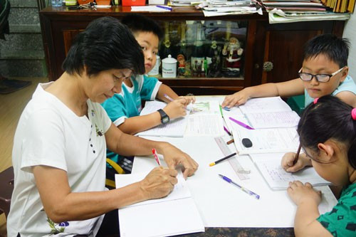 Bà Mã Thị Đan Phượng nhiều năm nay dạy học miễn phí cho các em nhỏ trong khu phố Ảnh: Ý Linh