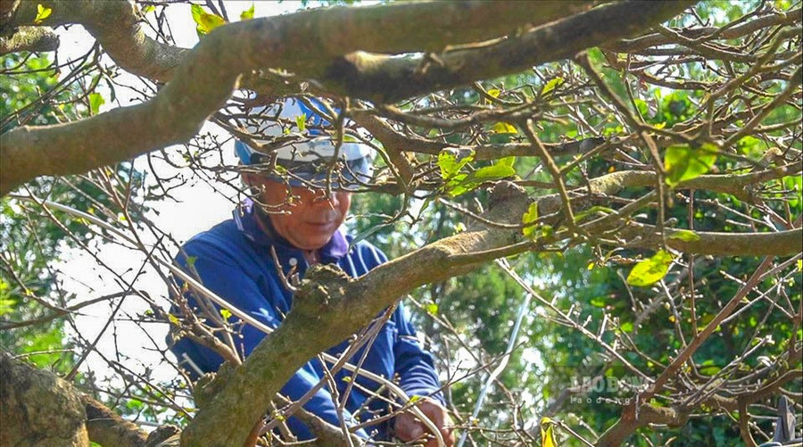 Anh Đúng cho biết, thường vào khoảng tháng 11 dương lịch là khách sẽ tìm sửa mai rất nhiều để kịp chưng Tết, còn với những cây khó thì phải làm sớm hơn từ trước đó.