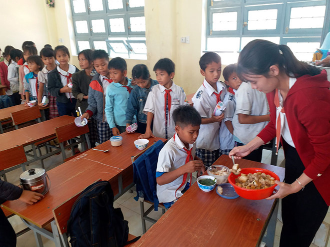 Ngày đến Trường tiểu học TT.Đăk Glei, gặp các thầy cô giáo đang nấu ăn cho học sinh, chúng tôi cảm nhận thêm về thầy hiệu trưởng, nhà giáo Trần Xuân Ninh nhân hậu, từng một thời khoác áo lính. Để cho có bữa cơm trưa ấy, đích thân thầy Ninh qua tận làng Long Nang, TT.Đăk Glei, họp dân làng lại để vận động. Những ngày đầu để có cơm cho học sinh ăn, vợ thầy Ninh đứng ra nấu nướng tại nhà rồi mang đến trường. Khoảng 1 tuần sau, khi giáo viên nhà trường lập bếp nấu ăn, vợ thầy Ninh cũng lên giúp việc.