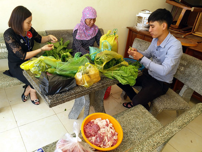 Rau, thịt, trứng… do giáo viên đóng góp nấu ăn cho học sinh. Ảnh: PHẠM ANH
