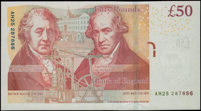 Đơn vị đo năng lượng watt (kí hiệu W) cũng được đặt theo tên ông. Hình ảnh James Watt có mặt trên tờ 50 bảng Anh vào năm 2011.