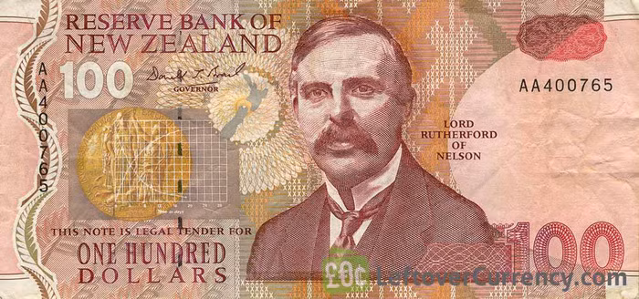 Ernest Rutherford (1871-1937) có mặt trên tờ 100 đô la New Zealand từ năm 1990.