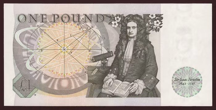 Isaac Newton (1642-1727) có mặt trên tờ 1 bảng Anh từ năm 1978-1988.