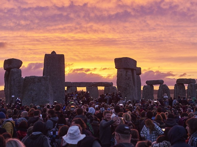 Stonehenge, Anh: Stonehenge ở Wiltshire, Anh, thu hút gần 25.000 du khách mỗi năm vào ngày hạ chí. Đây là ngày mà mặt trời chiếu thẳng hàng, và những tia sáng đầu tiên xuất hiện từ phía trên Heel Stone.
