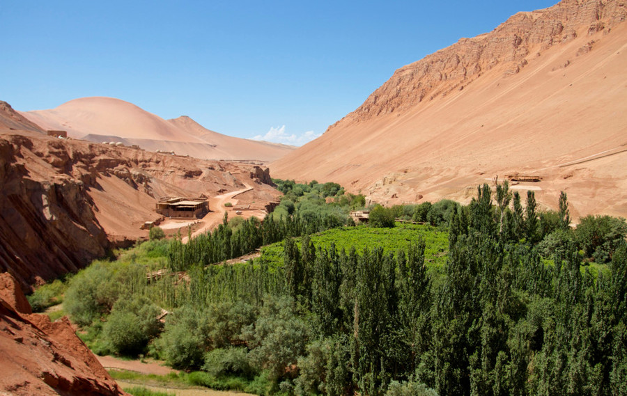 Ốc đảo Turpan, Trung Quốc: Ốc đảo Turpan, nằm ở phía tây bắc Trung Quốc, là một trong những điểm dừng chân trên con đường tơ lụa. Hiện nay, nơi này là một khu vực giàu nông nghiệp, đặc biệt là nho.
