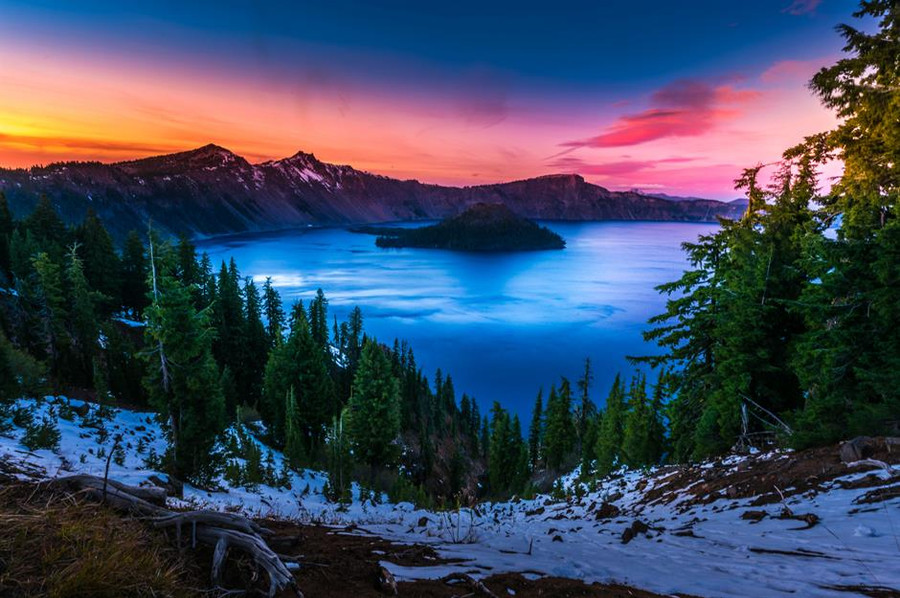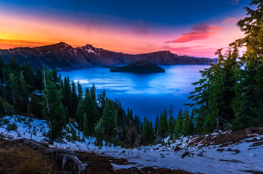 Hồ ở bang Oregon được hình thành trong một núi lửa bị sụt lún, với độ sâu lên tới 598m. Nước trong hồ được cung cấp bởi tuyết tan và nước mưa tự nhiên, nên nó có độ tinh khiết rất cao.