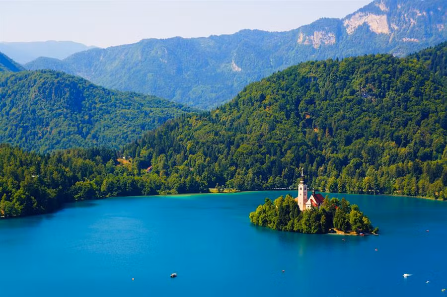 Hòn đảo ở giữa hồ có một nhà thờ cổ được xây dựng từ thời Trung cổ và vẫn nguyên vẹn cho đến ngày nay. Hồ được bao quanh bởi núi Julian Alps và dãy Karawanks, tạo nên khung cảnh như trong truyện cổ tích.