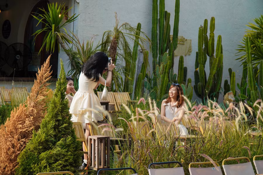 Cuối tuần, quán cà phê này càng đông đúc. Vừa thi học kỳ xong, để tránh nắng nóng, Bùi Thị Thùy Trúc, sinh viên Trường ĐH Tôn Đức Thắng tìm đến quán này để thư giãn. Nữ sinh chia sẻ: "Mình rủ bạn cùng đi vui chơi và chụp hình. Mình rất ấn tượng với không gian thoáng mát, những bông cẩm tú cầu lớn, cổng chụp hình rất giống với Đà Lạt. Bờ sông nơi đây rất sạch sẽ, mát mẻ và dễ dàng săn được ảnh hoàng hôn".