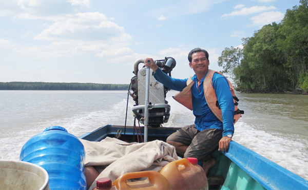 Sau bữa cơm ấm cúng với anh em giữ rừng, anh Hải chở tôi đi thăm một vòng rừng Sác. Câu chuyện của tôi với anh Hải lúc to lúc nhỏ theo con sóng ì oạp táp vào thân vỏ lãi. Anh Nguyễn Văn Hải (45 tuổi) sinh ra và lớn lên bên dòng kinh Lòng Tàu thuộc xã Tân Thôn Hiệp, huyện Cần Giờ. Cha mẹ anh là những người nông dân chính hiệu, cả đời bám rừng, bám sông nơi cánh rừng ngập mặn Cần Giờ. Sau giải phóng, cha mẹ và những người anh em của anh tham gia trồng rừng, phủ xanh những mảng màu xám ngoét do chiến tranh để lại.