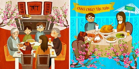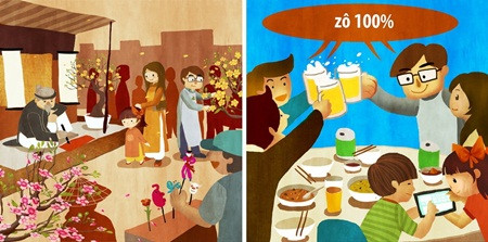 Tết trong quan niệm của người xưa là dịp để các thế hệ cháu con về đoàn tụ sum vầy bên mâm cơm gia đình. Tết nay nhiều gia đình trẻ chọn cách đi du lịch và ăn Tết trong quán xá, nhà hàng để đơn giản bớt ngày Tết thay vì hội họp cùng ông bà, họ hàng thân thích dùng chung mâm cơm.