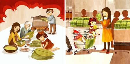 Người ta thường nói chiếc bánh chưng gói sẵn đã vô tình tước đi mất tiếng cười nói rôm rả, tiếng trẻ con vui đùa bên nồi bánh chưng ngày Tết. Thế nhưng, đừng đổ oan cho chiếc bánh chưng gói sẵn! Tất cả nằm ở việc người mẹ bận rộn là thế nhưng liệu có đủ “dũng cảm” lao vào “mặt trận” gói bánh chưng để tái hiện lại cho con không khí cả nhà rộn ràng, quây quần rửa lá, gói bánh, luộc bánh... như mẹ đã trải qua lúc bé hay không.