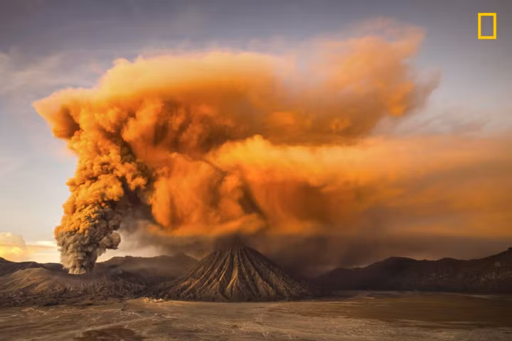 Sự sống có tồn tại trên sao Hỏa? Bức ảnh chụp cảnh một ngọn núi lửa ở Java đang phun trào.