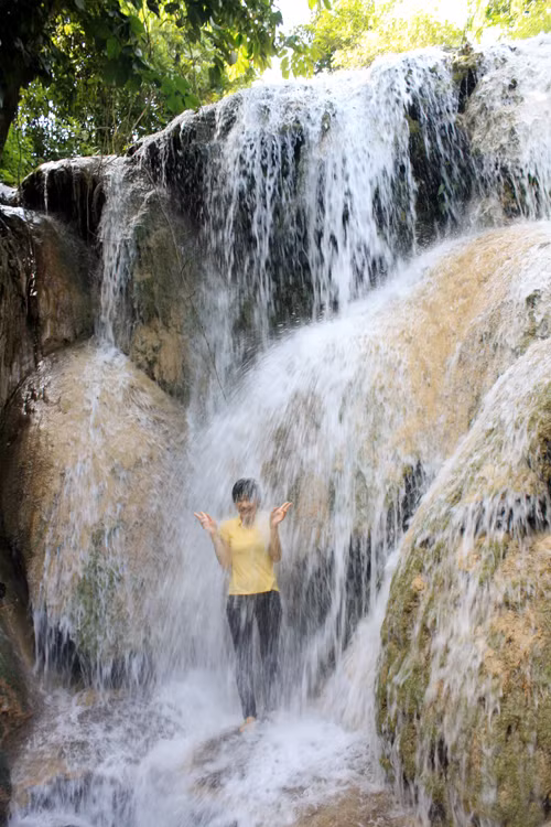 Thác chảy qua những lùm cây, không trơn nên chuyện đi lại, nghỉ ngơi dễ dàng. Bạn chinh phục từ dưới chân lên đỉnh thác mà không hề có cảm giác mệt nhọc.
