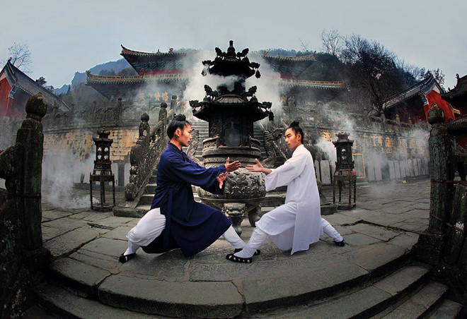 Chùa Thiếu Lâm: Chùa Thiếu Lâm nằm ở chân núi Thiếu Thất thuộc dãy Tung Sơn, tỉnh Hà Nam, Trung Quốc. Được xem là cái nôi của Thiền tông Trung Hoa, ngôi chùa này lại nổi tiếng nhờ gắn liền với võ phái Thiếu Lâm. Chùa được Hiếu Văn Đế nhà Bắc Ngụy xây dựng, với trụ trì là Bồ Đề Đạt Ma, người đặt nền móng cho Thiền tông và võ thuật Thiếu Lâm. Võ công của các nhà sư đạt đỉnh cao vào thời nhà Minh và hình thành một võ phái riêng biệt.