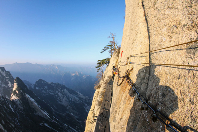 Là một trong Ngũ đại danh sơn của Trung Quốc, Hoa Sơn có 5 đỉnh núi chính, cao nhất là đỉnh Nam Phong (2.154 mét). Đỉnh chính của ngọn Hoa Sơn là Hóa Sơn hay Tây Nhạc, có độ cao 2.083 mét. Với khung cảnh thiên nhiên hùng vĩ, hoang sơ, nơi này thu hút du khách từ khắp nơi trên thế giới. Màu xanh của cây cối nổi bật trên những vách đá hoa cương trắng sừng sững khiến bạn có cảm giác như lạc vào một thế giới khác.