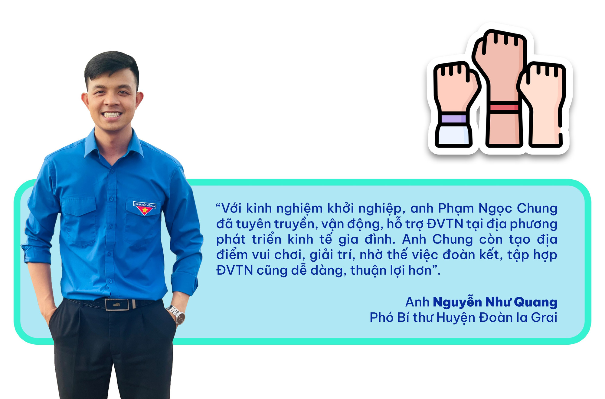 “Sau nhiều năm lăn lộn mưu sinh ở các tỉnh, thành phố, tôi đã quay trở về quê để tìm hướng phát triển kinh tế. Khi kinh tế ổn định, tôi có thời gian để tham gia công tác Đoàn ở địa phương”-anh Phạm Ngọc Chung (SN 1991, làng Út 1, xã Ia Hrung, huyện Ia Grai) chia sẻ lý do quay trở về khởi nghiệp tại quê hương.