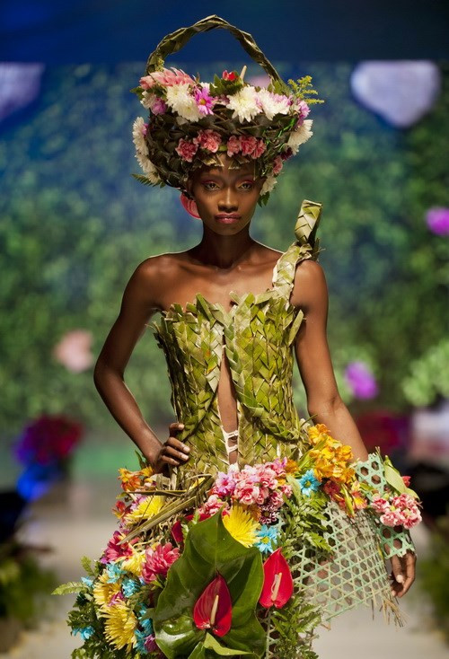 Triển lãm thời trang sinh thái diễn ra ở Cali, Colombia có nhiều mẫu trang phục đẹp mắt được làm từ các chất liệu thiên nhiên.