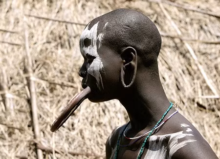 Ở bộ lạc Surma thuộc Ethiopia, tục lệ qui định cô gái sắp đi lấy chồng phải nhổ bỏ răng cửa hàm dưới, rạch môi và nhét vào đó một chiếc đĩa bằng đất sét nung. Theo thời gian, khi da môi rão dần, chiếc đĩa cũng được thay thế với kích cỡ lớn hơn. Cho tới khi cô đi lấy chồng, giá trị đồ sính lễ mà nhà gái có thể thách nhà trai chính là dựa vào độ lớn của chiếc đĩa gắn trên môi cô. Đĩa càng lớn, cô dâu càng có giá. Tục lệ này còn được mở rộng ra thành đeo đĩa ở tai. Nhưng đĩa ở môi vẫn được coi là tiêu chuẩn hàng đầu để đánh giá độ “hot” của một cô gái.