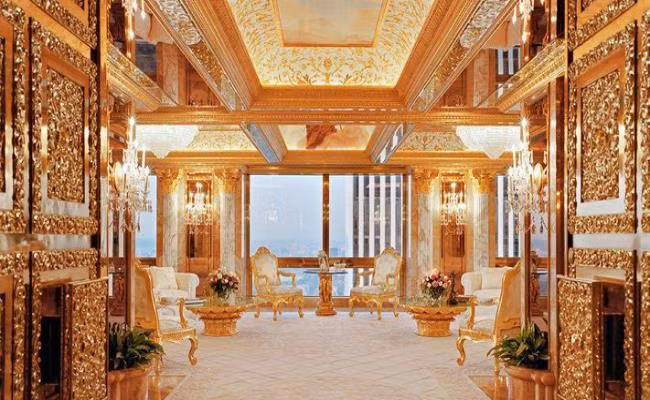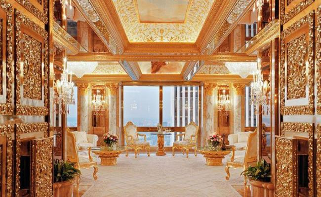 Ông Trump sở hữu căn penthouse tại Trump Tower ngay giữa trung tâm Manhattan trị giá 54 triệu USD. Theo Forbes. Căn penthouse được trang trí bằng vàng 24 carat và lát đá cẩm thạch, tổng trị giá lên tới 100 triệu USD.