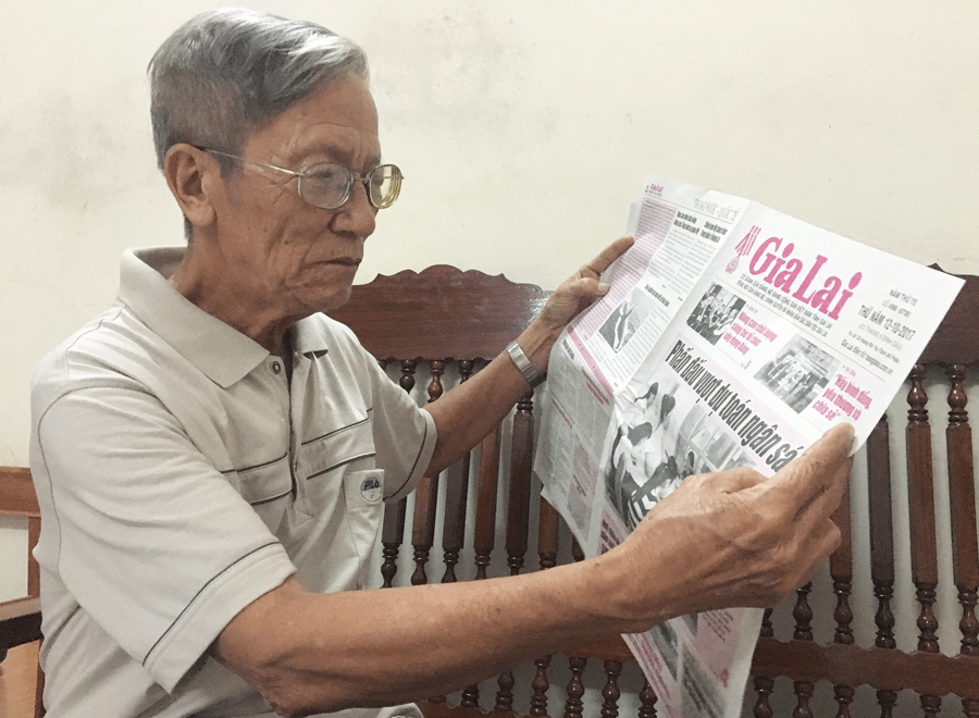 Ngày còn công tác, tôi có nhiều tờ báo để đọc, nắm bắt được nhiều thông tin. Tuy nhiên, kể từ lúc nghỉ hưu vào năm 1993 đến nay, tôi ít được đọc báo. Từ đầu năm 2018 đến nay, tôi cũng như nhiều đảng viên về hưu khác được Đảng, các cấp chính quyền trong tỉnh quan tâm dành ngân sách mua cấp tặng mỗi ngày 1 tờ báo Gia Lai để đọc, nắm bắt được thông tin thời sự trong nước, trong tỉnh và địa phương. Tôi rất vui mừng và cảm ơn Đảng, chính quyền.