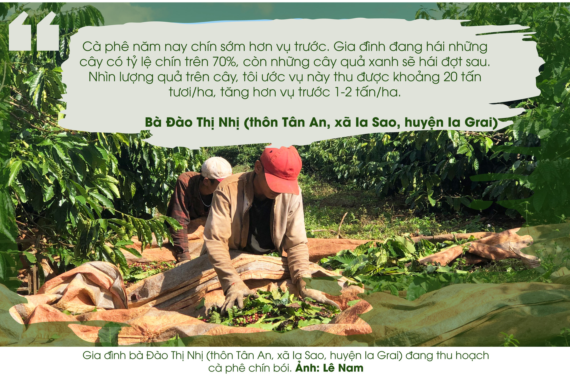 Tại huyện Ia Grai, người dân cũng đang tất bật thu hái cà phê niên vụ 2021-2022. Nhiều gia đình thuê nhân công tại chỗ hoặc thuê từ các tỉnh Bình Định, Phú Yên, Quảng Ngãi, Hà Tĩnh vào để thu hoạch.
