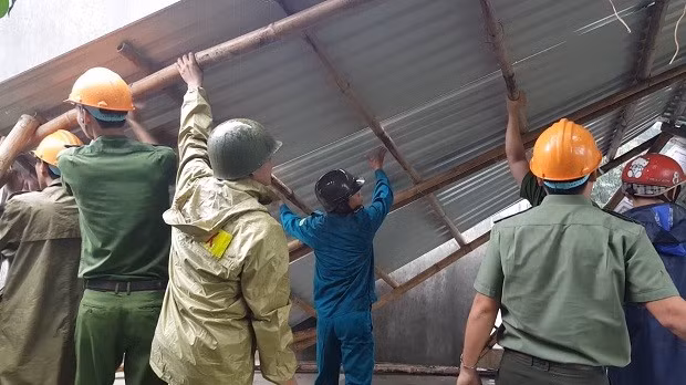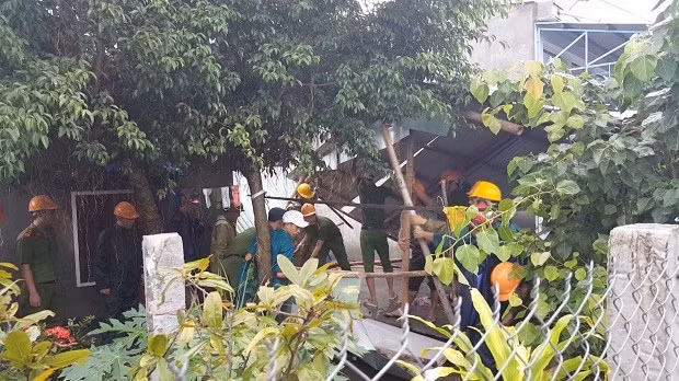 Cùng thời điểm đó, nhiều tổ công tác khác của Công an huyện Tuy Phước cũng đến các thôn Trung Thành, xã Phước Lộc phối hợp với Công an xã, dân quân tự vệ địa phương dọn dẹp đống đổ nát ở nhiều ngôi nhà bị sập và sửa chữa lại những ngôi nhà bị tốc mái để bà con tránh trú mưa.