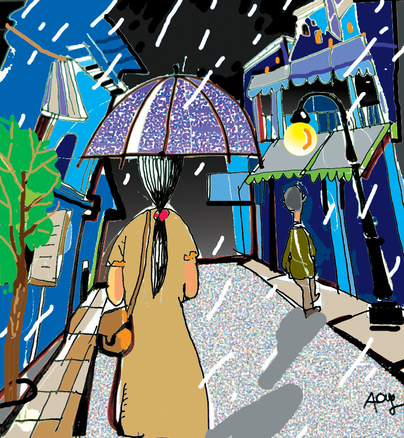 Tôi chưa đi hết nỗi buồn của mình, tôi cố thủ trong niềm đau mặc cho Nhiên vỗ về, xoa dịu thì cuộc chạm mặt tình cờ không báo trước. Anh cùng người mới ghé quán, tay trong tay tình tứ, anh thậm chí còn hôn nhẹ lên tóc cô ta. Anh lướt qua tôi, vô tình như chưa từng quen biết, chưa từng có quãng thời gian đẹp đẽ bên nhau. Tôi lao ra khỏi quán, trời vẫn mưa để che chở tôi, đồng hành cùng tôi để xóa dấu vết của nước mắt.